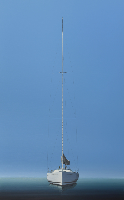 Zapraszam na 7 Aukcję Sztuk Pięknych. 6.09.2025 sobota, godz. 18:00, Galeria w Sopocie, Boh. Monte Cassino 43. link do aukcji"Jacht", akryl na płótnie, 120 x 75 cm. 2025