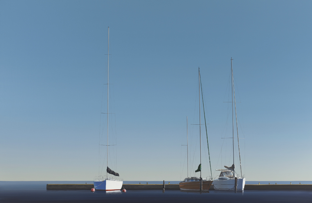 Zapraszam na 40 Aukcję Sztuki XXI wieku. 22.11.2025 sobota, godz. 18:00, Galeria w Sopocie, Boh. Monte Cassino 43. link do aukcji"Jacht", akryl "Przystań z jachtami", akryl na płótnie, 85 x 130 cm. 2025
